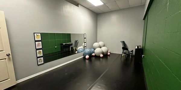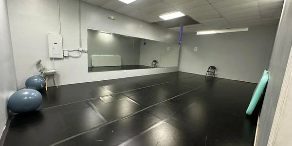 This studio is approximately 200 sqft. This space includes marley. It can be used as a small rehearsal space, photography studio, etc.